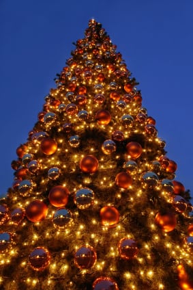 Giant Christmas Tree Giant outdoors Christmas tree illuminated at the evening night against dark blue sky